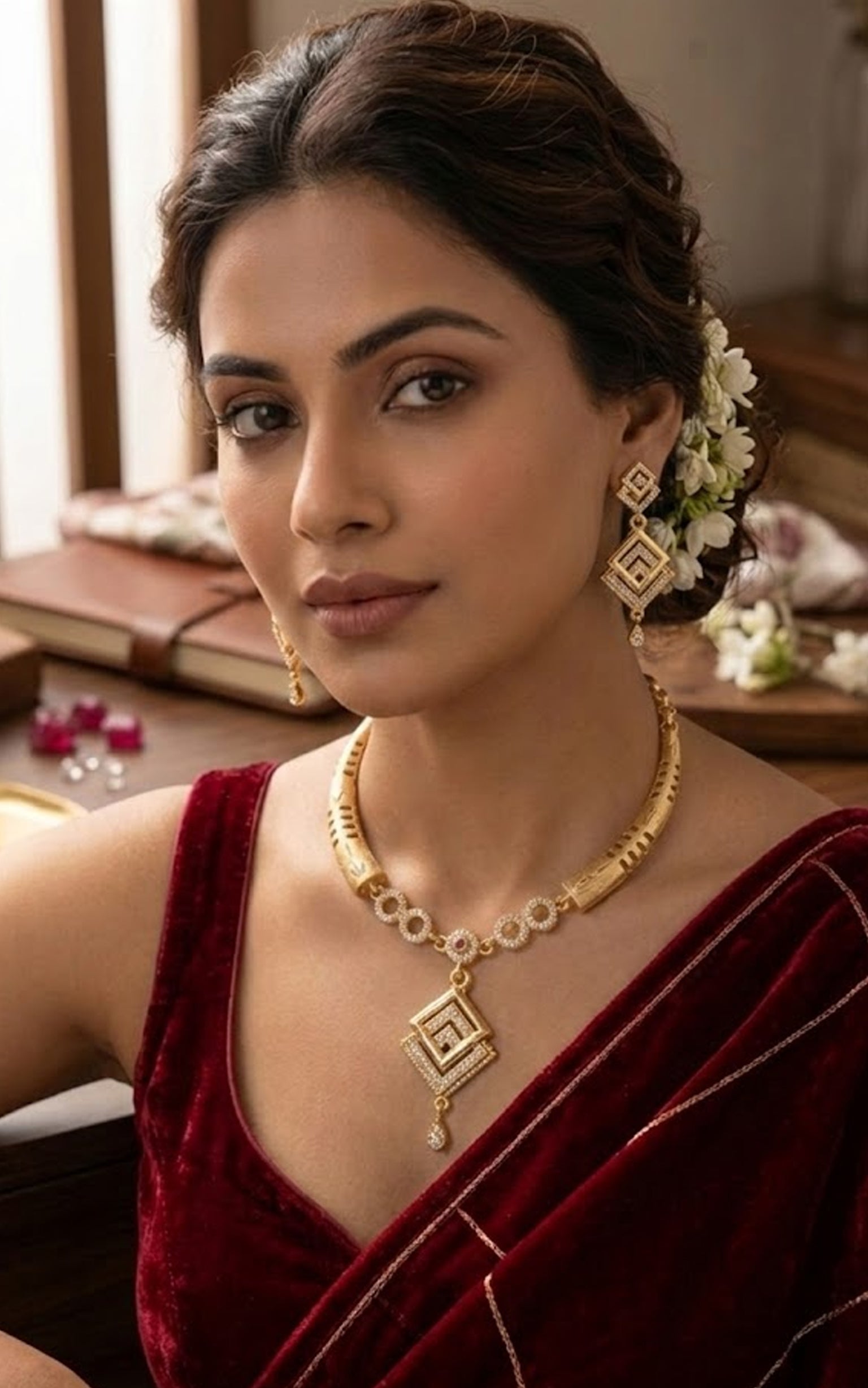 Royal Geometric Gold Necklace Set